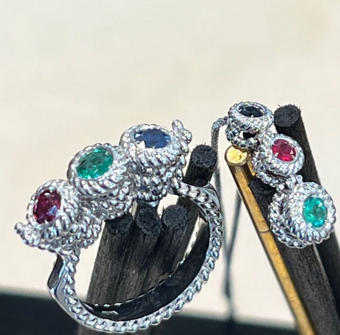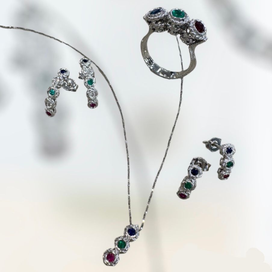 INTRECCIOLOVE 3 PRESTIGE oro 18 KT. e pietre preziose (diamanti puri, diamanti neri, smeraldi naturali, rubini naturali e zaffiri blu naturali)